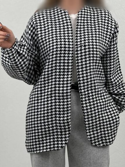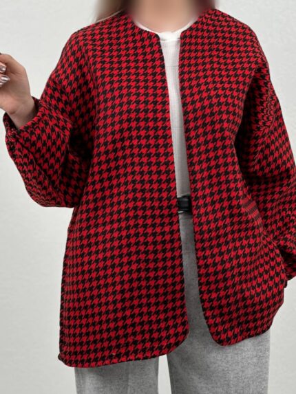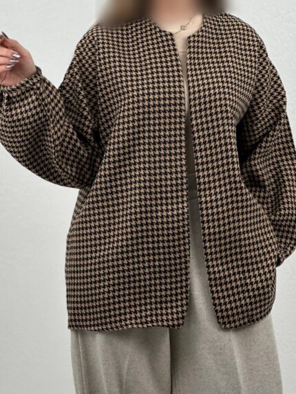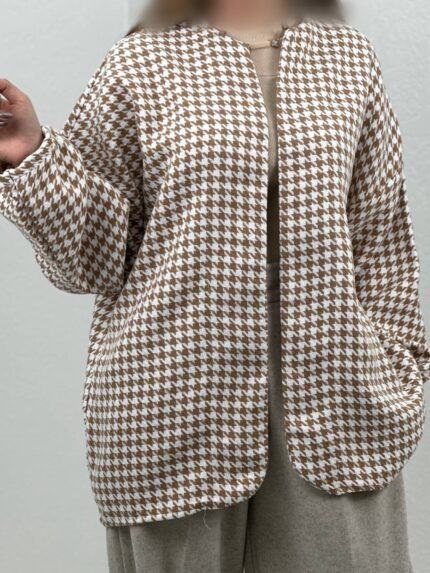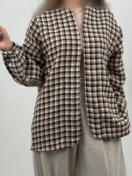 فوتر چهارخانه آستین چرم+کمربند کد:۳۱۱۰۰۰