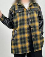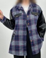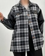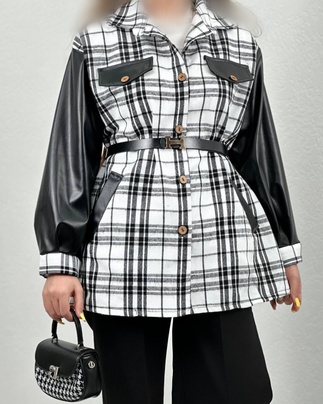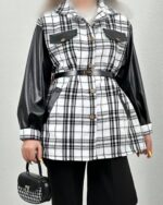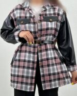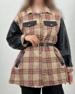 فوتر چهارخانه آستین چرم+کمربند کد:۳۱۱۰۰۰