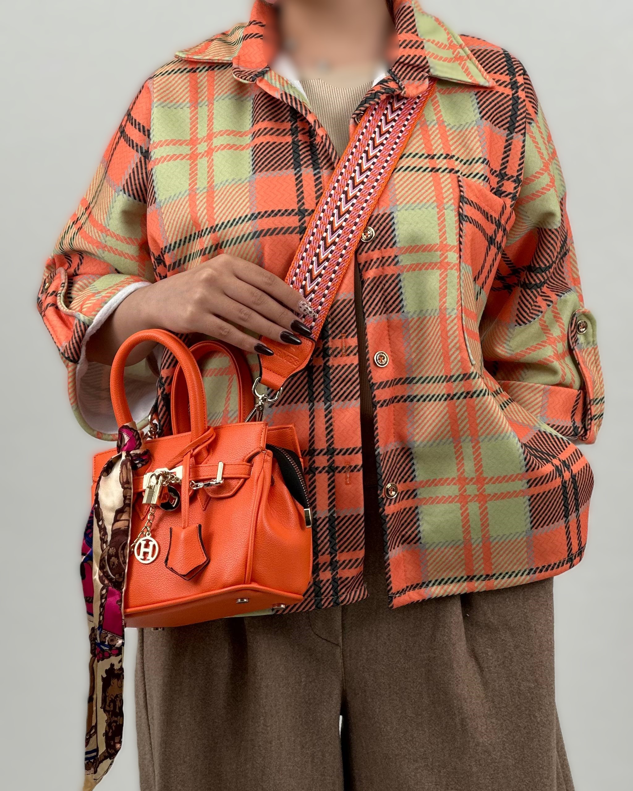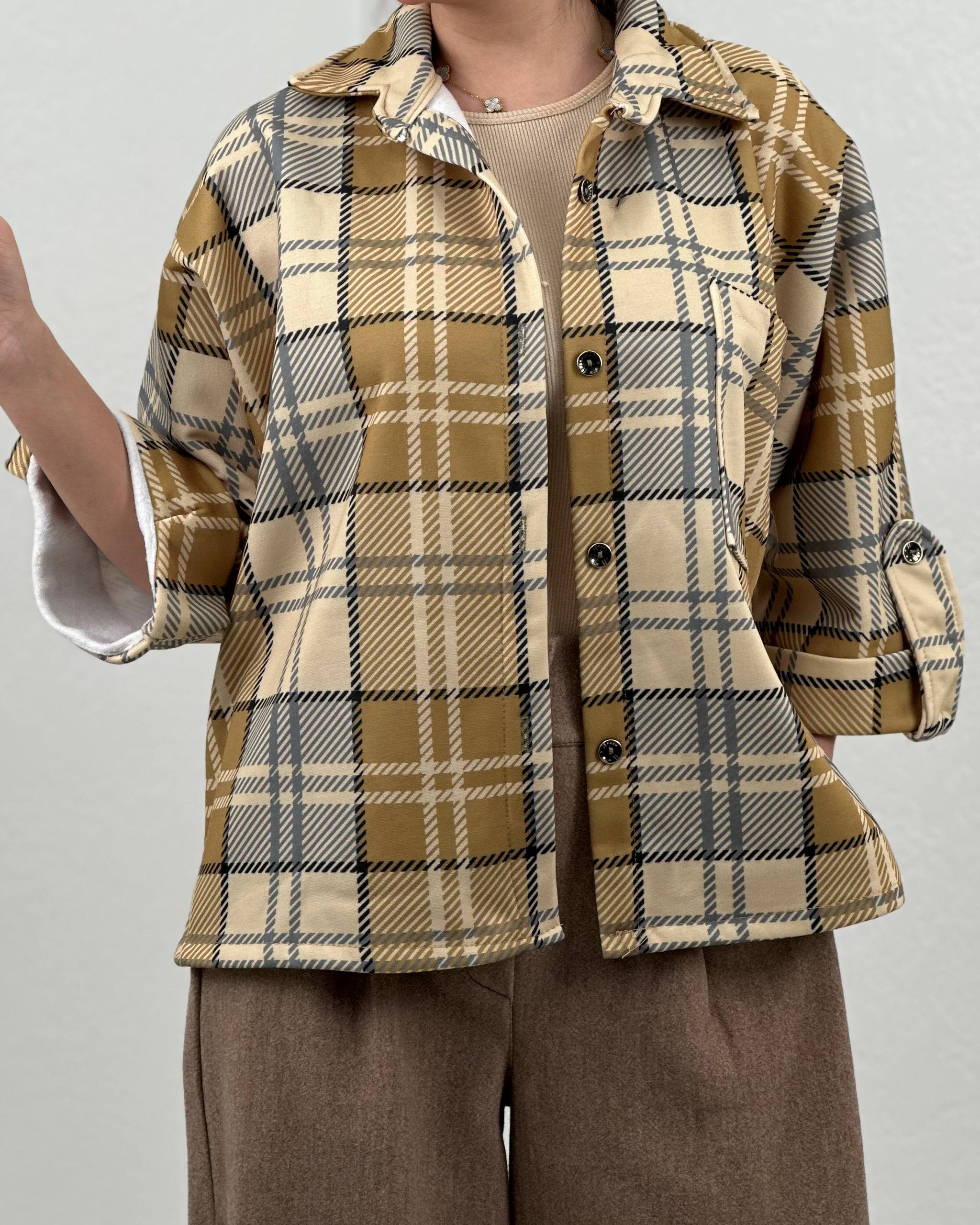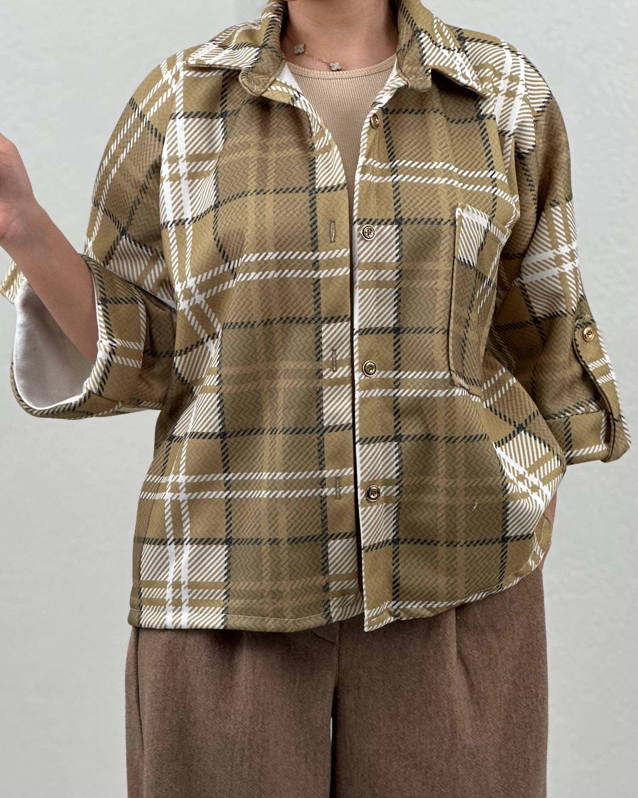 مانتو چهارخانه آستین پاگون کد:۳۱۱۰۰۰