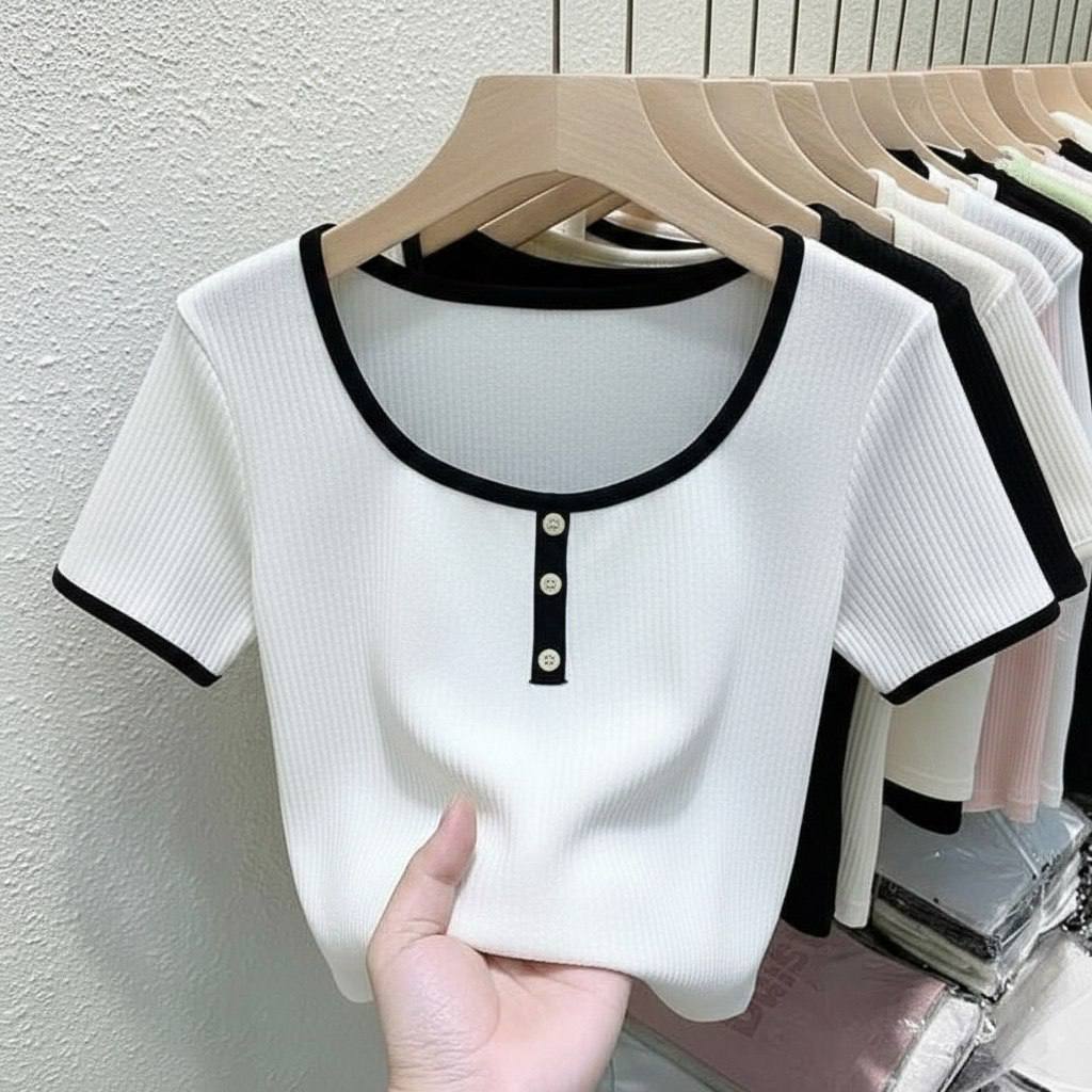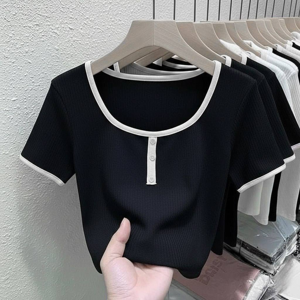 خانه کراپ - تیشرت - بادی کراپ سه دکمه کد: ۴۴۰۰۰